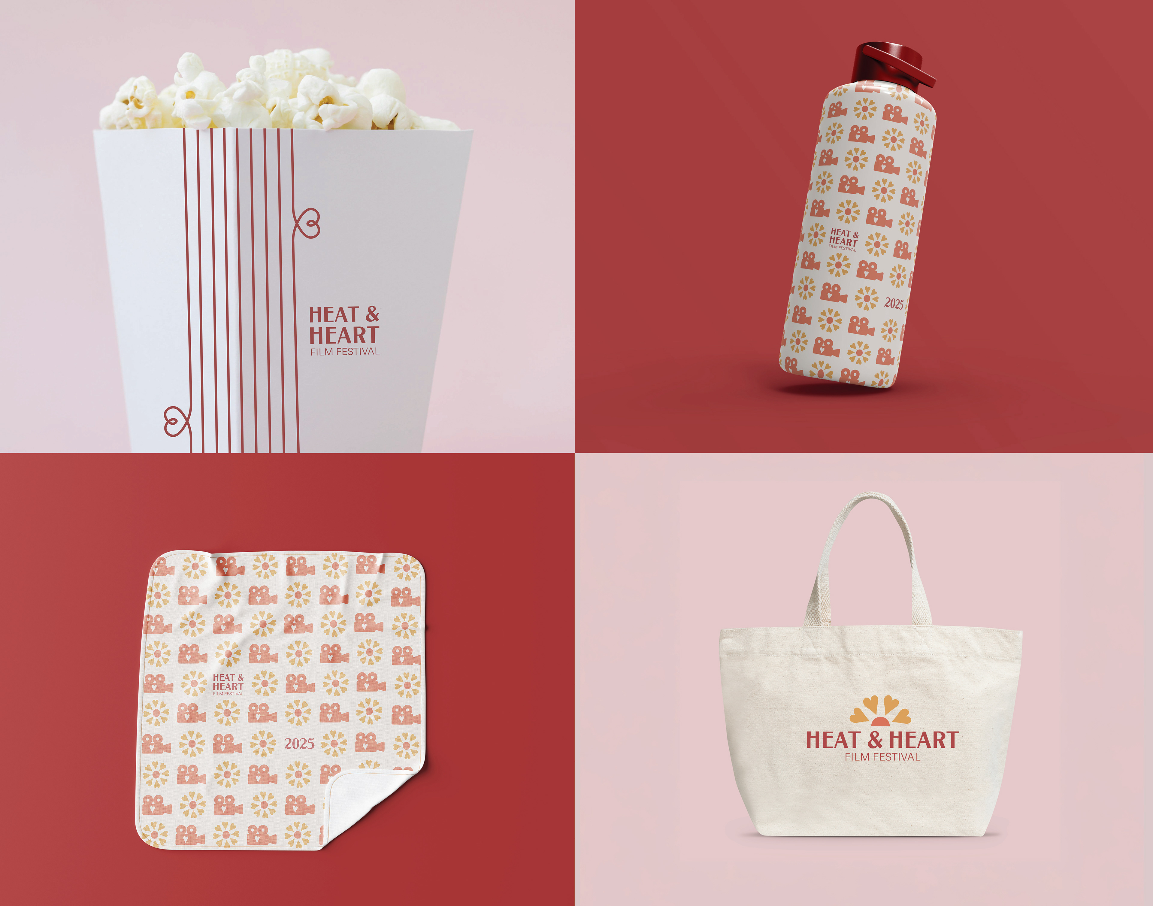 HEAT & HEART popcorn / HEAT & HEART blanket / HEAT & HEART WAter bottle / HEAT & HEART tote bag